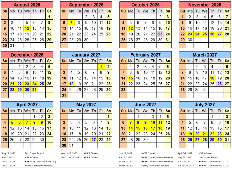 HVFS 2026-2027 Calendar